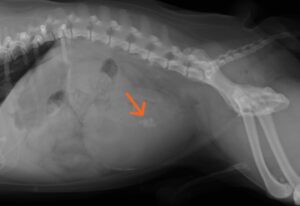 尿石症の症状は、血尿や頻尿、排尿障害、疼痛を伴う排尿が一般的です。尿管や尿道に結石が完全に詰まってしまうと、腎臓へ影響し腎障害を引き起こすため、嘔吐や食欲不振、元気消失がみられます。排尿できない状態が続くと緊急状態になる可能性もありますので注意が必要な病気です。