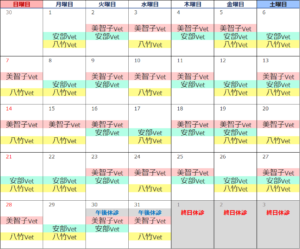 12月出勤獣医師カレンダー/年末年始診療時間変更のお知らせ
