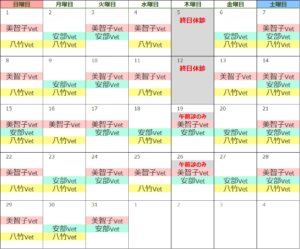 3月出勤獣医師カレンダー