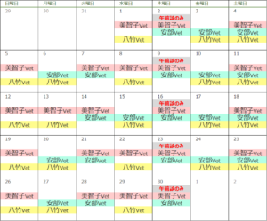 4月出勤獣医師カレンダー