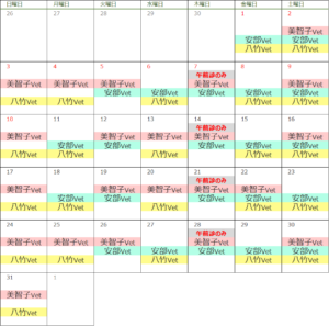 5月出勤獣医師カレンダー/ゴールデンウィーク診察時間変更のお知らせ