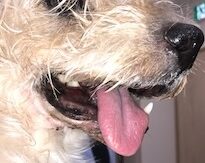 以前、頬の内側の小さな腫瘍をいち早く見つけてくれたご家族がいました。悪性黒色腫(メラノーマ)で、かなり高齢のワンちゃんでしたが、小さかったため簡単に切除することができ、快適なQOLを得ることができたのを覚えています。